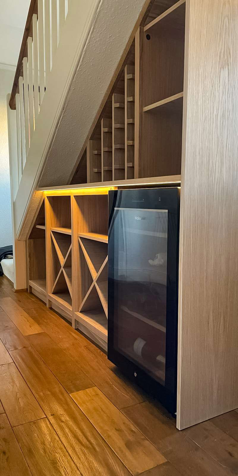 Got a tricky layout? No problem. We specialise in creating clever solutions for staircases with storage underneath, ensuring no space goes to waste.